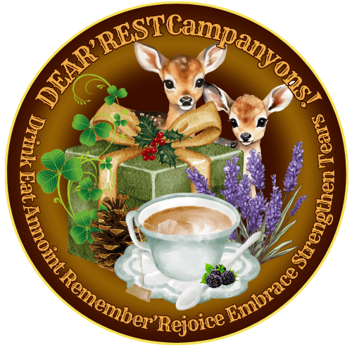 DEAR'REST Campanyons! are Daughters of Eve (women) who come alongside other DEAR'REST Daughters of Eve! (women) in their sorrow. DEAR'REST Campanyons! support with the gifts of Myrrh'sage, hospitality, prayer, time, and connection. They encourage DEAR'REST Daughters of Eve to Drink-Eat-Anoint-Remember'Rejoice-Embrace-Strengthen-Tears!