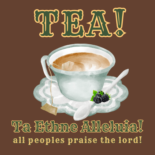 TEA! is an acronym in Greek and English for the Greek words "Ta Ethne Alleluia!" which is English means "All Peoples Praise the LORD!" Habakkuk 2:14 "For the earth will be filled with the knowledge of the glory of the LORD as the waters covers the sea." From Psalm 67 "Let the nations be glad and sing for joy....May the people praise you, God; may all the peoples praise you!" From Psalm 96 "Sing to the LORD a new song! Sing to the LORD all the earth!" From Psalm 150 "Let everything that has breath praise the LORD!"