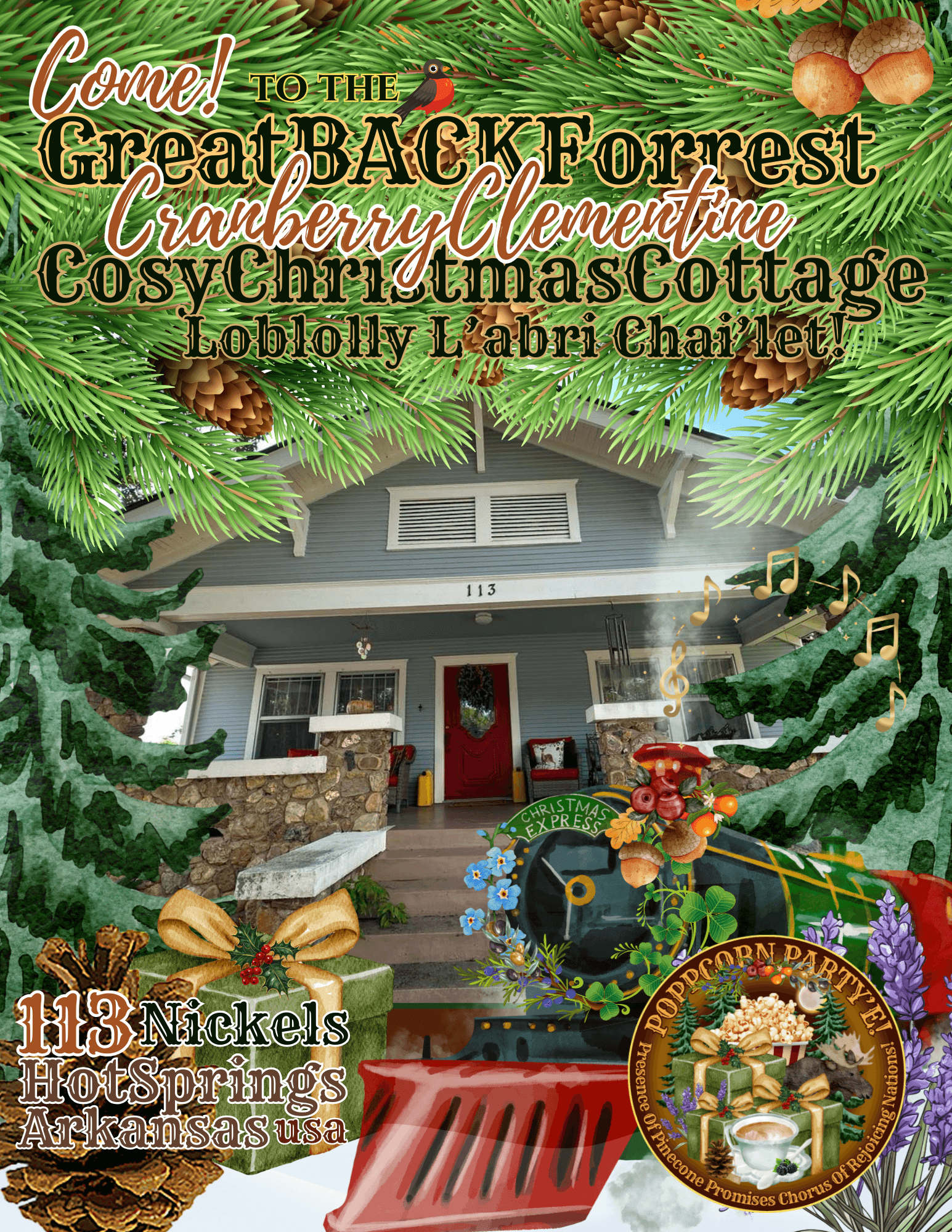 Come! to the Great BACK Forrest Cranberry Clementine Cosy Christmas Cottage Loblolly L'abri Chai'let! The Cosy Christmas Cottage has been thoughtfully designed as a cosy and welcoming place for cupps of tea, prayer, and presence. A place of Mines'tree for Daughters of Eve, women in the Bought'tea! of Christ, who find themselves in need of refreshment for their body and nourishment for their spirit.