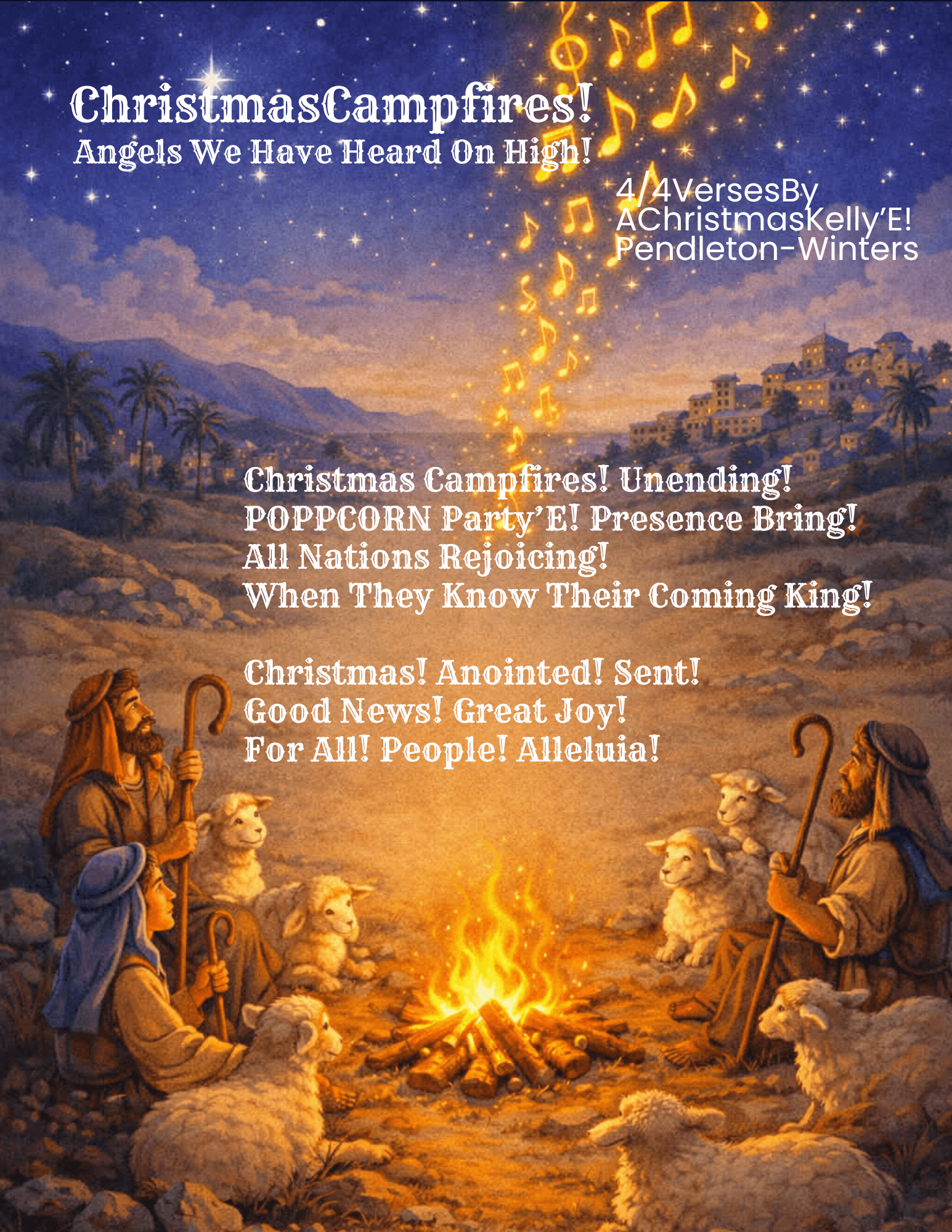 Named for the Christmas Story in Luke 1-2, where angels appear to shepherds who were "keeping watch over their flocks by night" to announce, "Do not be afraid! I bring you good news that will cause great joy for all the people! Today in the town of David a Savior has been born to you; he is the Messiah, the Lord. This will be a sign to you: You will find a baby wrapped in cloths and lying in a manger." I imagine since they were keeping watch by night--they had a Christmas Campfire!